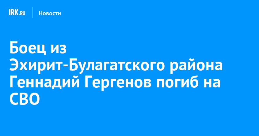 Военнослужащий из Эхирит-Булагатского района Геннадий Гергенов погиб в ходе проведения специальной военной операции. Ему был 41 год, сообщил в телеграм-канале мэр МО Геннадий Осодоев.