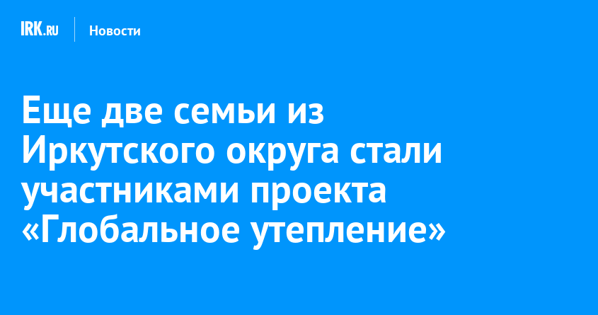 Российский холдинг Эн+ продолжает реализацию проекта «Глобальное утепление», который ориентируется на повышение энергоэффективности частных домов, освещая процесс в серии документальных фильмов. Участниками нового выпуска программы стали семьи Шеметовых и Кожевниковых из села Урик Иркутского округа. Видео можно посмотреть по ссылке.