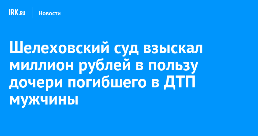 Жительница Ангарска, действующая в интересах своей несовершеннолетней дочери, обратилась в Шелеховский городской суд Иркутской области с иском о компенсации морального вреда. Девочка признана потерпевшей по уголовному делу, в результате дорожно-транспортного происшествия она потеряла отца, сообщает объединенная пресс-служба судов общей юрисдикции Иркутской области.