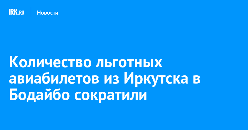 В Иркутской области приняли решение ограничить количество продаваемых по-льготному тарифу авиабилетов на маршрут Иркутск — Бодайбо. Всего на год предусмотрено чуть более двух тысяч билетов.