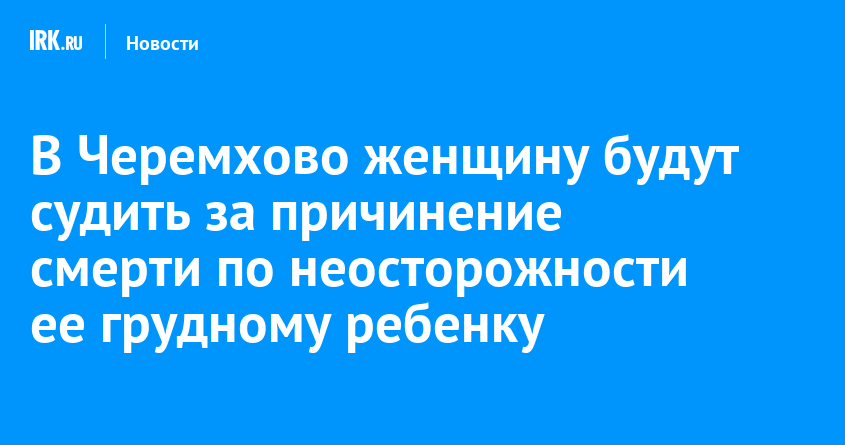 Прокуратура Черемхово утвердила обвинительное заключение по уголовному делу в отношении 37-летней жительницы Черемховского района. Ее обвиняют по части 1 статьи 109 УК РФ «Причинение смерти по неосторожности». Уголовное дело передали в суд, сообщили в пресс-службе прокуратуры Иркутской области.