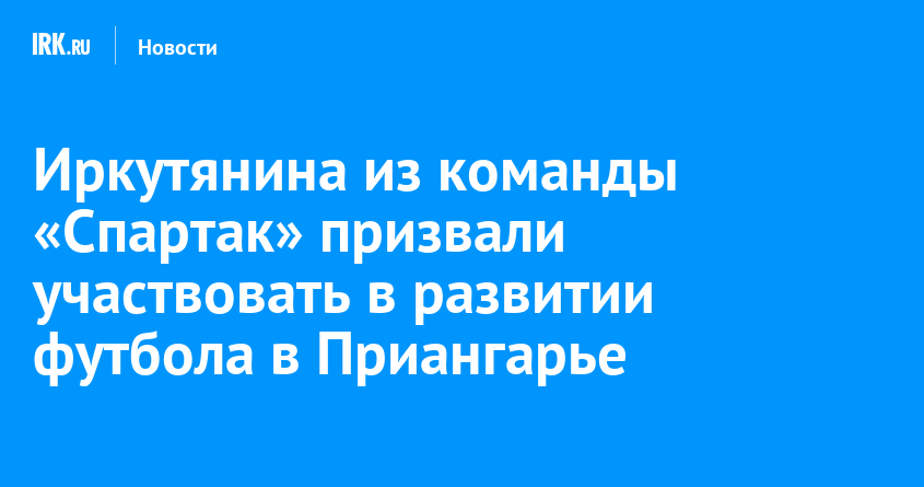 Футболиста из московской команды «Спартак» Романа Зобнина призвали участвовать в развитии футбола в Иркутской области. Такую идею высказал первый зампредседателя комитета по физической культуре и спорту Госдумы России Дмитрий Свищев.