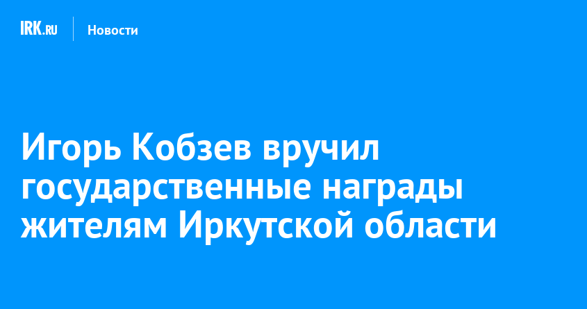 По поручению президента России Владимира Путина губернатор Иркутской области Игорь Кобзев вручил государственные награды жителям Приангарья. Среди отмеченных высоких знаков отличия — орден Пирогова, медали ордена «За заслуги перед Отечеством», медаль «Родительская слава», а также ведомственные награды: «За развитие железных дорог», «За развитие Сибири и Дальнего Востока», сообщили в пресс-службе правительства региона.