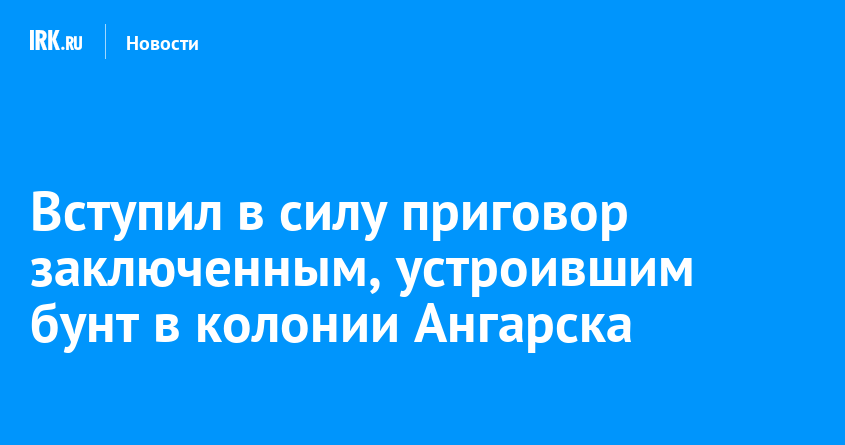 В феврале 2025 года Иркутский областной суд вынес приговор по уголовному делу в отношении 12 мужчин. Их признали виновными в массовых беспорядках и дезорганизации деятельности учреждений, обеспечивающих изоляцию от общества. Злоумышленникам назначили от 5,5 до 21 года лишения свободы в колониях строгого и особого режимов. Трое осужденных отбывают часть наказания в тюрьме.