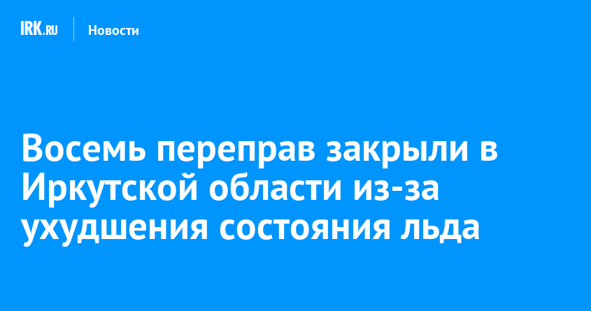 Прекратилась работа переправы на реке Уде в Нижнеудинском районе «Нижнеудинск — Боровинок — Чуна», на Братском водохранилище в Балаганском округе «Балаганск — Игжей», на реке Бирюсе в Тайшетском округе — «Соляная», «Тремино — Новотремино» и «Шелаево — Новобирюсинский». Также закрыли ледовые дороги на Чуне — «Полинчет — Кондратьево», на Братском водохранилище в Усть-Удинском районе «Новая — Уда — Чичково», на реке Лене в Усть-Кутском районе «Усть-Кут — СОТ «Ветеран».