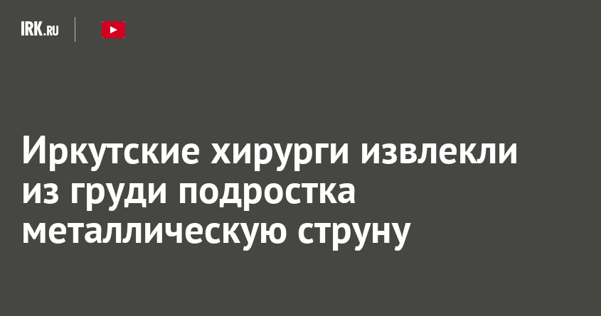 Иркутские врачи провели уникальную для российской детской хирургии операцию по удалению инородного тела из самого труднодоступного пространства грудной клетки — заднего средостения. Металлический проводник оказался в организме пациента в результате экстренной реанимации, когда медики районной больницы спасали жизнь юного спортсмена после жесткого столкновения с деревом, рассказал в соцсетях главный врач Иркутской областой детской клинической больницы Юрий Козлов.