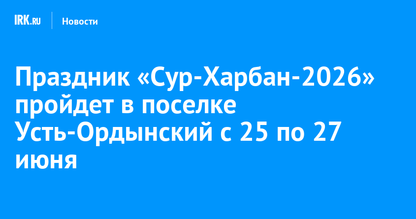 Губернатор Иркутской области Игорь Кобзев подписал распоряжение о проведении областного национального культурно-спортивного праздника «Сур-Харбан-2026». Мероприятие состоится с 25 по 27 июня в поселке Усть-Ордынский. Торжественное открытие запланировано на 26 июня на территории физкультурно-оздоровительного комплекса «Лидер», сообщили в пресс-службе правительства Иркутской области.