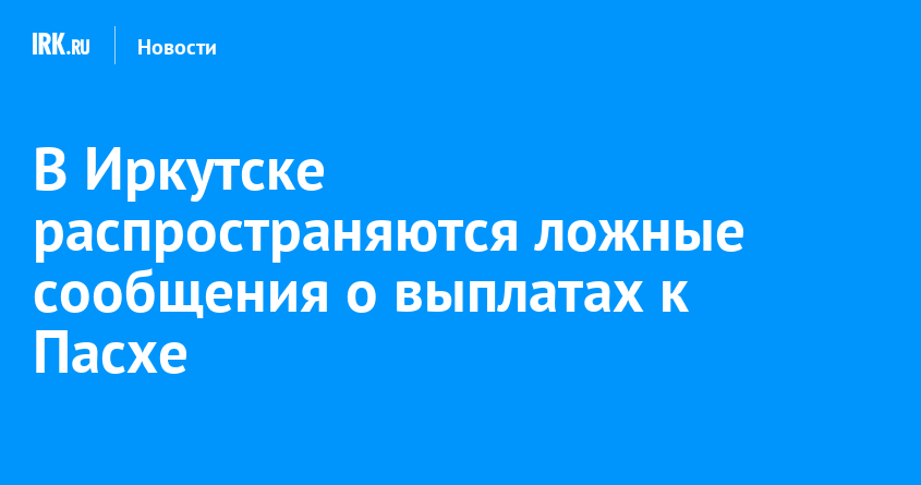 В преддверии Пасхи в соцсетях стали распространяться сообщения о финансовой помощи для отдельных категорий граждан. Как сообщили в пресс-службе администрации Иркутска со ссылкой на РИА Новости, эти данные не соответствуют действительности.