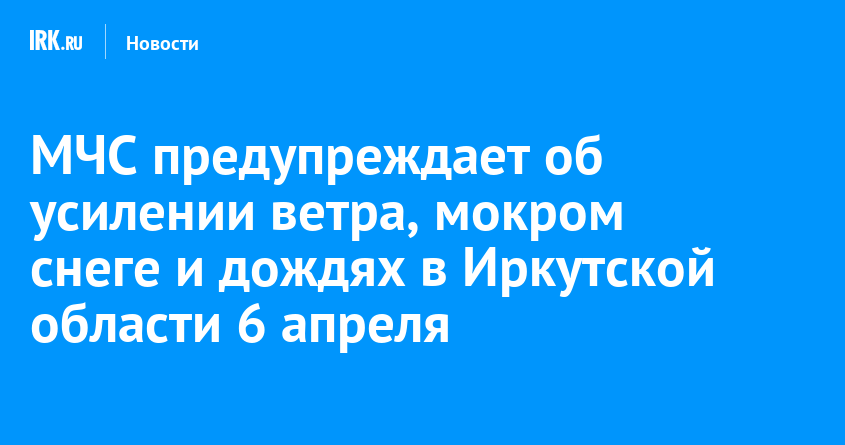 Ухудшение погоды ожидается в Иркутской области 6 апреля. ГУ МЧС России по региону предупреждает об усилении ветра с порывами до 20 метров в секунду, вероятны мокрый снег и дожди. На дорогах гололедица.