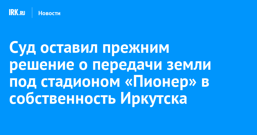 Прокуратура Иркутской области отстояла право муниципалитета на земельный участок под бывшим стадионом «Пионер». Арбитражный суд Восточно-Сибирского округа отклонил жалобы предпринимателей и постановил вернуть территорию в Октябрьском районе городу, сообщает пресс-служба региональной прокуратуры.