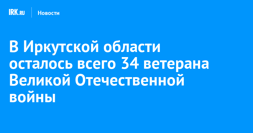 В Иркутской области продолжает сокращаться число ветеранов Великой Отечественной войны. По последним данным, в живых остаются всего 34 человека, которые защищали Родину в 1941-1945 годах. Об этом в соцсетях сообщил глава региона Игорь Кобзев.