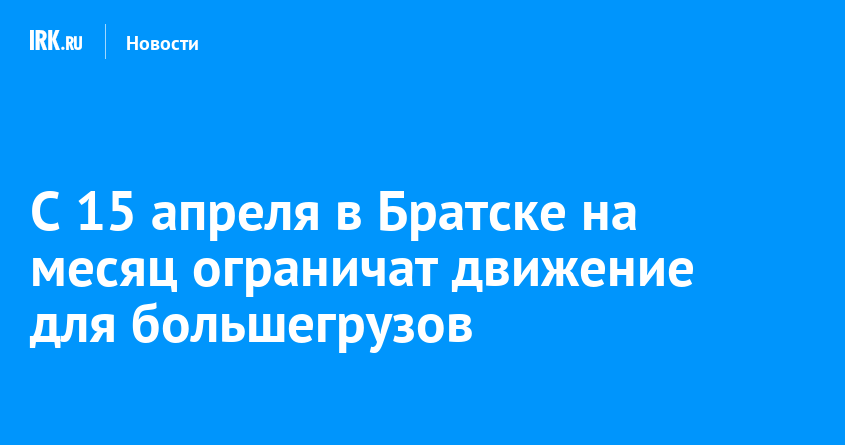 С 15 апреля по 14 мая в Братске введут временное ограничение для движения грузовых автомобилей. Данную меру примут для сохранения дорожного покрытия во время активного таяния снега и перепадов температур, сообщили в пресс-службе администрации города.