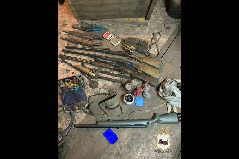 Полицейские обратили внимание на автомобиль УАЗ-469, припаркованный во дворе одного из домов в селе Покровка во время профилактической операции «Арсенал». В машине обнаружили гранату. Она оказалась учебной имитационной. В гараже также нашли три гладкоствольных ружья ИЖ-20, четыре обрезных ружья без номеров и 100 патронов разного калибра.