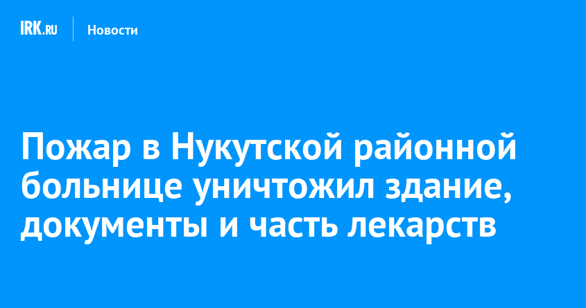 Министерство здравоохранения Иркутской области опубликовало комментарий по ситуации с пожаром на территории Нукутской районной больницы. Огонь уничтожил архивную, кадровую, бухгалтерскую и экономическую документацию и часть медикаментов, хранившихся в здании.