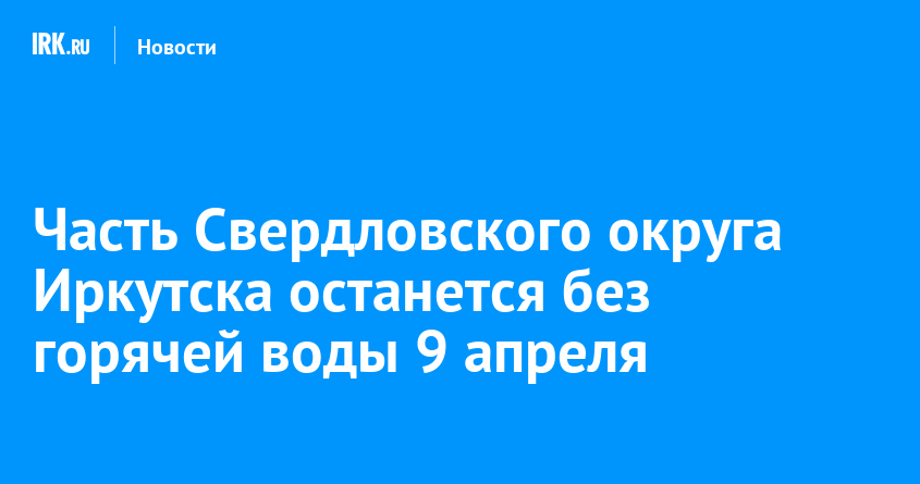 9 апреля некоторые дома Свердловского округа останутся без горячего водоснабжения и отопления. Отключение ожидается с 9:00 до 17:00, а по части адресов — до 18:00, сообщается в соцсетях оператора теплосетей Иркутска.