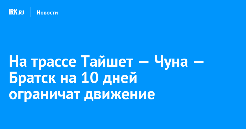С 14 по 24 апреля на участке автомобильной дороги Тайшет — Чуна — Братск (с 96-го по 108-й километр) введут временное ограничение движения. Причина — ремонтные работы на водопропускной трубе, сообщили в канале Дирекции автодорог в мессенджере MAX.