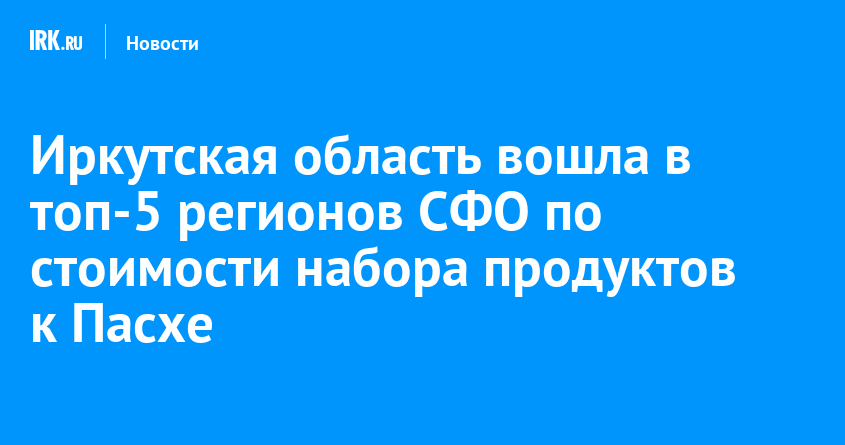 Иркутская область заняла четвертое место в рейтинге регионов Сибири по стоимости набора продуктов для приготовления основных пасхальных блюд — кулича, яиц и творожной пасхи. Ингредиенты для праздничного стола в Приангарье обойдутся в 499,94 рубля, следует из исследования Центра стратегических разработок.
