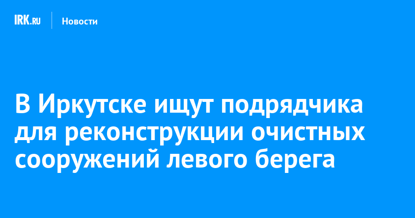 На сайте единой информационной системы в сфере закупок стартовал электронный аукцион, по результатам которого определят подрядчика для первой очереди реконструкции канализационных очистных сооружений левого берега Иркутска. Начальная стоимость контракта составляет 16,7 миллиарда рублей.