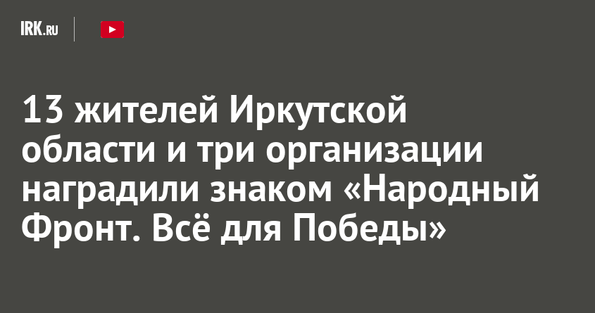 Информационным партнером церемонии выступил сайт IRK.ru. Ранее издание также получило знак «Народный Фронт. Всё для Победы» за активную социальную позицию, проведение совместных с Народным фронтом сборов и всестороннее освещение помощи бойцам.