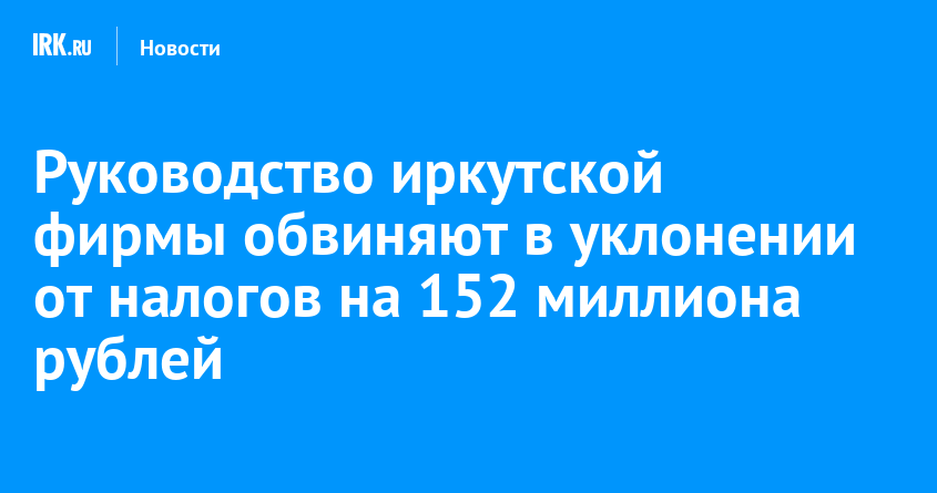 Прокуратура Иркутской области утвердила обвинительное заключение в отношении двоих мужчин, которые являются руководителями коммерческой организации. Их подозревают в уклонении от уплаты налогов на сумму свыше 152 миллионов рублей. Дело передали в суд, сообщают пресс-службы надзорного органа и СУ СКР по региону.