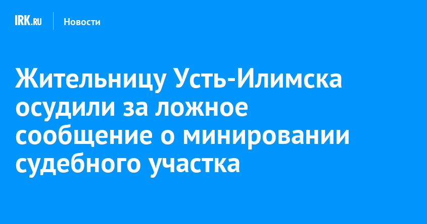 Суд установил, что в декабре 2025 года пьяная жительница Усть-Илимска позвонила в единую дежурно-диспетчерскую службу и рассказала, что здание судебного участка мирового судьи города заминировано. В связи с угрозой теракта правоохранители незамедлительно обследовали постройку и не подтвердили наличие взрывного устройства.