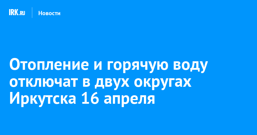 16 апреля 2026 года часть Иркутска останется без горячего водоснабжения и отопления. Отключение затронет Правобережный и Свердловский округа, сообщается в канале оператора теплосетей города в МАХ.