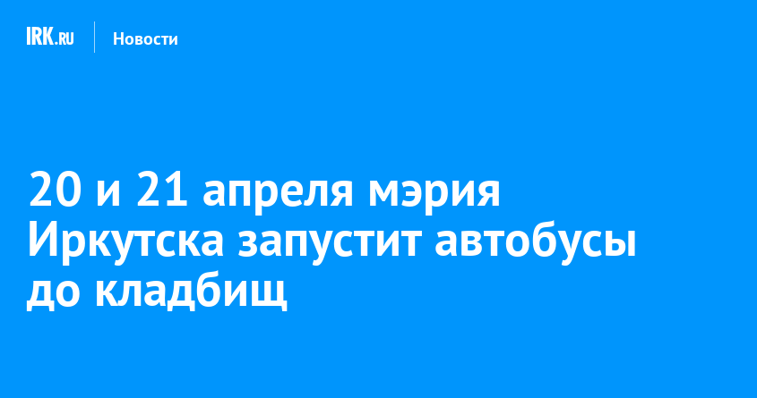 В Иркутске запустят автобусные маршруты на Маратовское, Александровское и Ново-Ленинское кладбища. Машины будут перевозить пассажиров в Дни памяти 20 и 21 апреля, сообщает пресс-служба администрации города. 20 апреля транспорт будет курсировать с 9:00 до 19:00, в Родительский день, 21 апреля, — с 9:00 до 20:00.