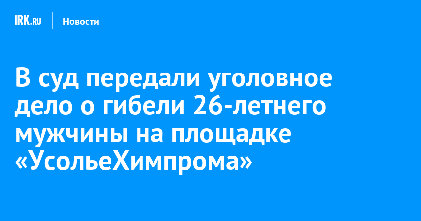 Усольский городской суд рассмотрит уголовное дело начальника участка, работавшего на площадке «УсольеХимпрома». Мужчину обвиняют в нарушении правил безопасности при ведении строительных и иных работ, повлекшем по неосторожности смерть 26-летнего сотрудника, сообщают пресс-службы прокуратуры и СУ СКР по Иркутской области.