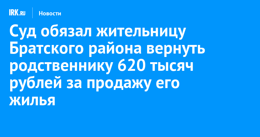 Жительницу Братского района через суд обязали вернуть родственнику более 600 тысяч рублей, которые она получила от продажи его комнаты и присвоила себе. Апелляционная инстанция Иркутского областного суда признала решение районных коллег законным и оставила жалобу ответчицы без удовлетворения.