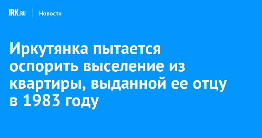 В редакцию IRK.ru обратилась жительница Иркутска Светлана М. с жалобой на то, что ее с ребенком пытаются выселить из занимаемой квартиры. Жилье предоставили отцу иркутянки в 1983 году во время его работы в аэропорту города. Помещение своевременно не приватизировали, в связи с чем администрация Иркутска требует его освободить.
