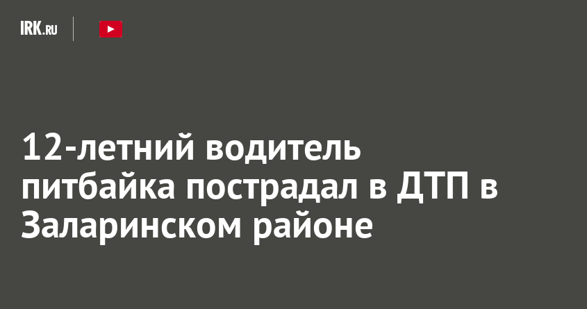 26 апреля в селе Илганское Заларинского района в ДТП попал 12-летний водитель питбайка. По предварительной информации Госавтоинспекции Иркутской области, подросток не справился с управлением, он упал с мототранспорта на асфальт. Пострадавшего экстренно доставили в медицинское учреждение в Иркутске.