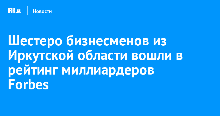 Журнал Forbes опубликовал обновленный список 155 богатейших россиян. В рейтинг миллиардеров попали сразу шесть предпринимателей из Иркутской области.