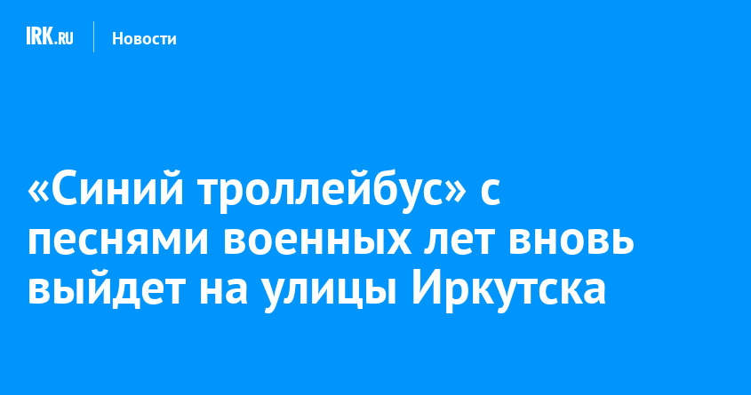 9 и 10 мая в Иркутске пройдет традиционная акция «Синий троллейбус — вахта памяти». Мероприятие приурочено к 81-й годовщине Победы в Великой Отечественной войне и 102-летию со дня рождения поэта и барда Булата Окуджавы. Организатором выступает Иркутский областной клуб самодеятельной песни «Мост».