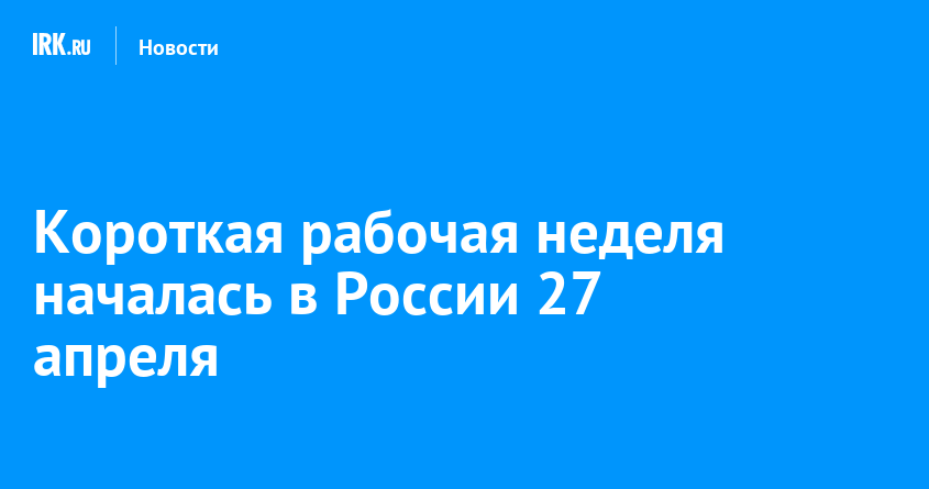 Четырехдневная рабочая неделя стартовала в России с 27 апреля 2026 года. Последним будним днем из четырех станет четверг, 30 апреля. Рабочий день сократится на час. С 1 по 3 мая ожидаются выходные, приуроченные к праздникам.
