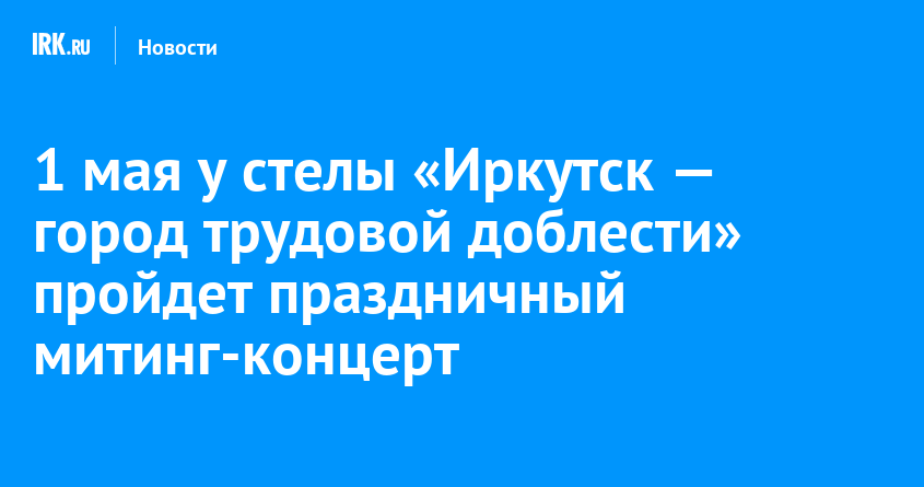 Иркутян приглашают отметить Праздник Весны и Труда на торжественном мероприятии у стелы «Иркутск — город трудовой доблести» в Октябрьском округе. В программе запланированы выступления профессиональных музыкантов, исполнение знаковых для города песен и яркий финал с дневным салютом, сообщает пресс-служба местной администрации.