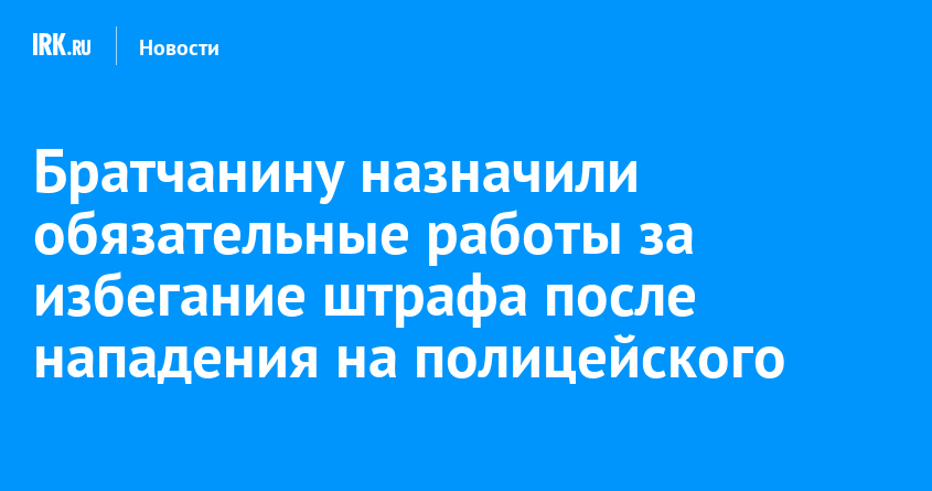 Суд заменил жителю Братска штраф за нападение на сотрудника полиции на обязательные работы. Если 25-летний мужчина не отработает положенное время, его отправят в колонию-поселение, сообщает пресс-служба ГУФССП России по Иркутской области.