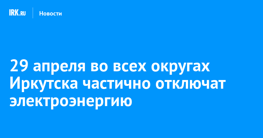 29 апреля в некоторых домах Иркутска ограничат электроснабжение для проведения плановых работ на электрических сетях. Без света останется ряд зданий в Правобережном, Свердловском, Октябрьском и Ленинском округах, сообщается в группе «Свет 38» в соцсети «ВКонтакте».