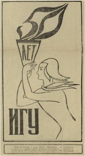 К 50-летию университет подготовил свыше 12 тысяч высококвалифицированных специалистов, работающих в различных областях народного хозяйства, культуры и просвещения, воспитал сотни талантливых научных работников. Среди воспитанников ИГУ пять членов-корреспондентов АН СССР, 47 докторов и более 500 кандидатов наук.