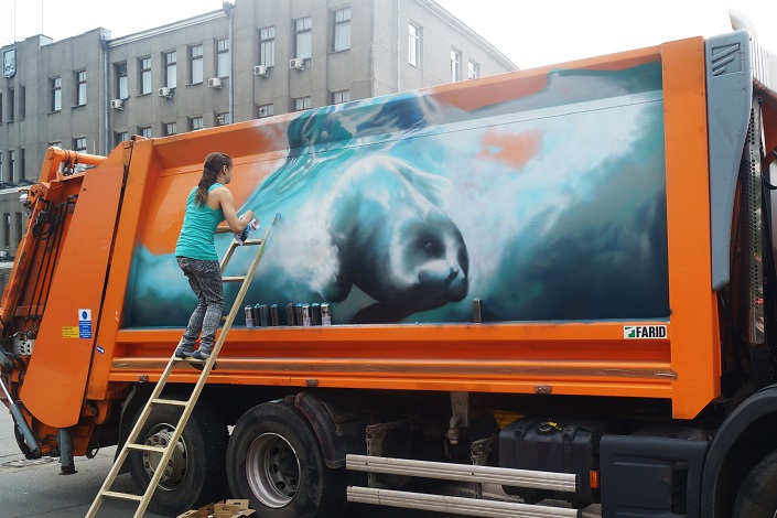 Познакомилась с ребятами, которые занимались граффити, и попросила порисовать какие-нибудь незамысловатые сюжеты. И так получилось, что я сразу же начала делать работы на заказ, в то время как обычно художники больше рисуют для себя, хотя, конечно, и заказы выполняют. Работала вместе с другом, очень талантливым художником, мне повезло многому у него научиться.