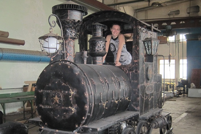 Так, почти два года ушло на работу над четырехтонным паровозом, его высота — 2,5 метра, а длина — 3 метра. Вся эта конструкция предназначена для приготовления барбекю, есть и коптильня. Сейчас работаем над созданием еще одного вагончика для угля и дров.