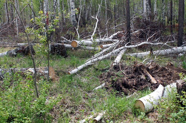 Просека выводит нас на берег Ангарского водохранилища. Жалоба подтвердилась: в прибрежной березовой роще недавно потрудилась бригада, действующая от имени неизвестных заказчиков. Внушительную часть леса здесь успели вырубить, а также выкорчевать пни, разровнять площадку и, судя по меткам на земле, заняться межеванием земли.