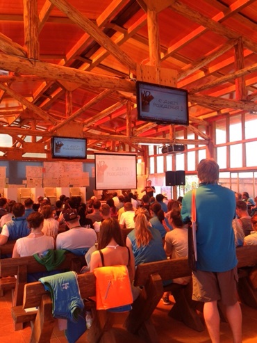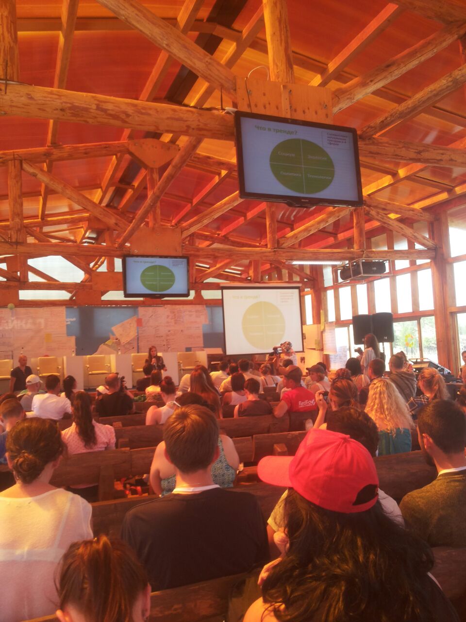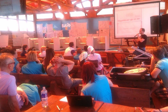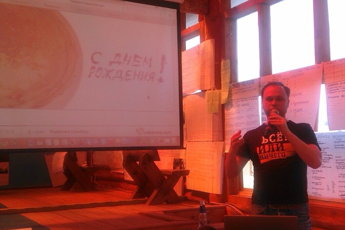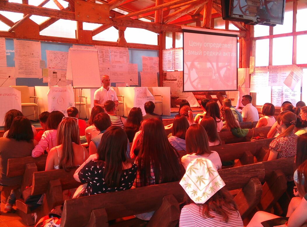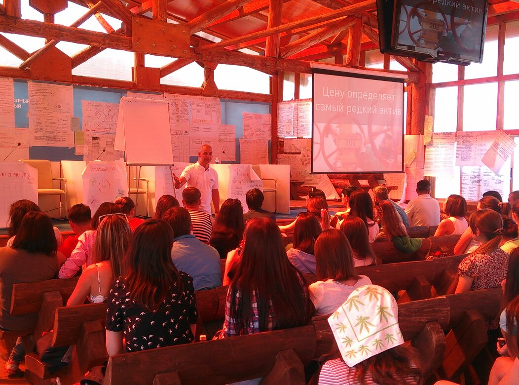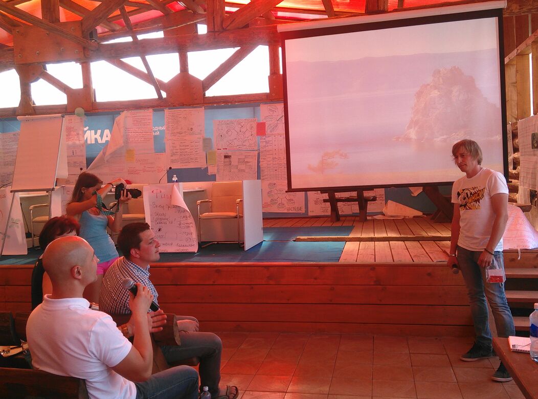 14:20 Ребята вернулись с экскурсий. Сейчас лекцию читает известный блогер Олег Бармин. Рассказывает о том, как нестандартными решениями можно привлечь к себе внимание.