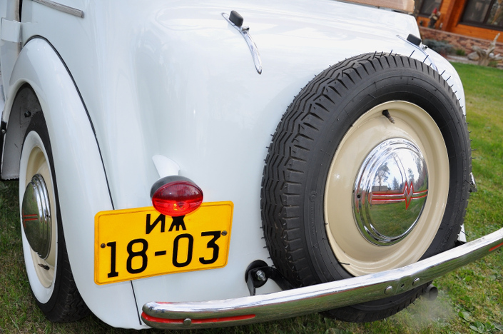 Теперь машина выглядит с иголочки (осталось дошить и установить матерчатый верх), двигатель заводится с полоборота и работает ровно, а едет замечательно. Удалось прокатиться на месте водителя. Впечатления незабываемые: тяжелые руль и тормоза без всяких усилителей, маленькие оконца, тесно. Здесь еще 6-вольтная электрика, «дворники» с механическим приводом, один задний фонарь и даже нет поворотников — они в то время не предусматривались.