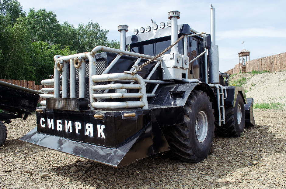 За годы полигон превратился во внушительную выставочную инсталляцию. По периметру вырос частокол со стражами из стиральных машин на башнях, деревянными острожными зданиями и железными скорпионами в самых неожиданных местах, например на крыше избушки. С этим средневековым колоритом соседствует экспозиция автомобилей самых разных видов — от брутально-футуристичного «Сибиряка» до стилизованной установки «Катюша». Вся техника на ходу.