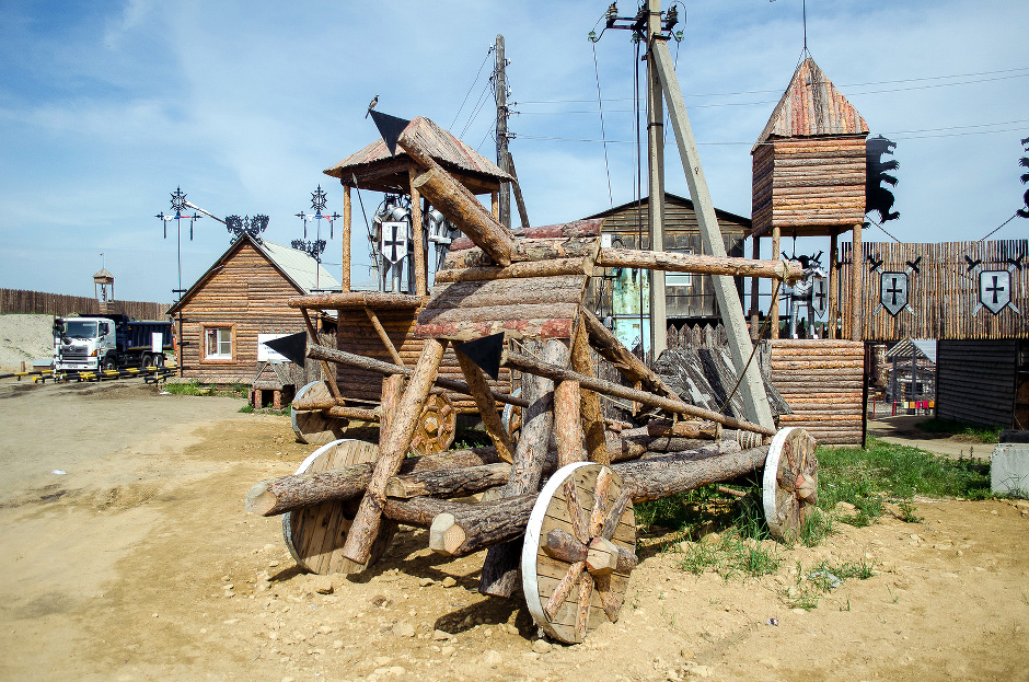 Въезд на иркутский городской полигон ТБО на 5-м километре Александровского тракта похож на что угодно, но только не на свалку: затейливые деревянные ворота с медведями окружены высоким забором, грозные рыцари стойко следят за непрошеными гостями из бойниц. За оградой — целая батарея внушительных осадных орудий и еще один отряд латников во главе с командиром на коне, закованном в металлическую кольчугу. В таком антураже именно снующие туда-сюда мусоровозы кажутся совсем неуместными.