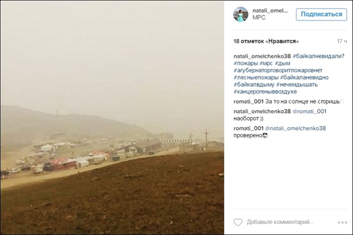 «Это как? Горит, в основном, Восточная Сибирь и Западная Сибирь. Больше 300 тысяч (!!!) гектаров только в Иркутской области. Позавчера после обеда район острова Ольхон, и разумеется всё остальное, начало затягивать дымом. Вчера, примерно в 10.30 на переправе со стороны МРС острова Ольхон вообще не было видно. Расстояние в этом месте три (или около того) километров. Более-менее заметным становился паром, когда подходил к берегу где-то метров на 500», — пишет другой пользователь «Фейсбука» в соцсети Николай Тарханов.