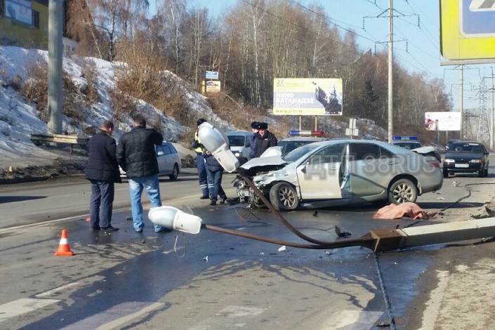 Днем в Иркутске на улице Старокузьмихинская произошло столкновение Mazda 3 и Toyota Camry. Первый автомобиль двигался в левом ряду для поворота на АЗС. От удара Toyota отбросило на световую опору. Водитель Camry погиб на месте происшествия, второй участник аварии не пострадал.