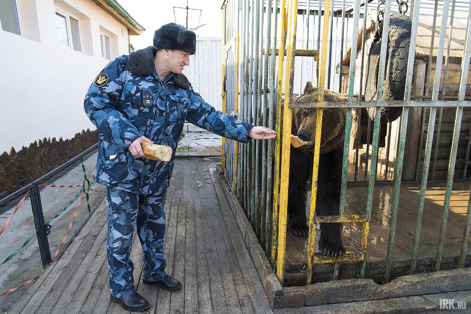 — Зовут Була, недавно проснулся после зимней спячки, — сообщил Николай Кузнецов. Була живет здесь уже несколько лет. Его доставили медвежонком, он потерял мать в лесных пожарах. Сегодня он любимец колонии, заключенные ухаживают за ним, кормят.