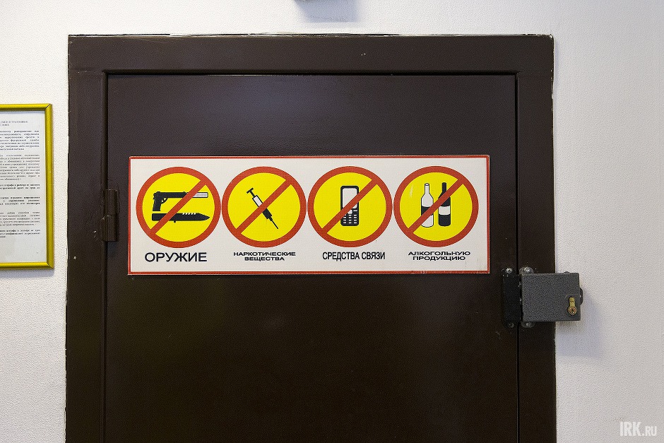 Исправительная колония — настоящая крепость. Чтобы войти на территорию, нужно пройти сложную процедуру. Гостей тщательно проверяют на наличие запрещенных предметов — это деньги, продукты, оружие, наркотики, игральные карты, одежда, средства связи и многое другое.