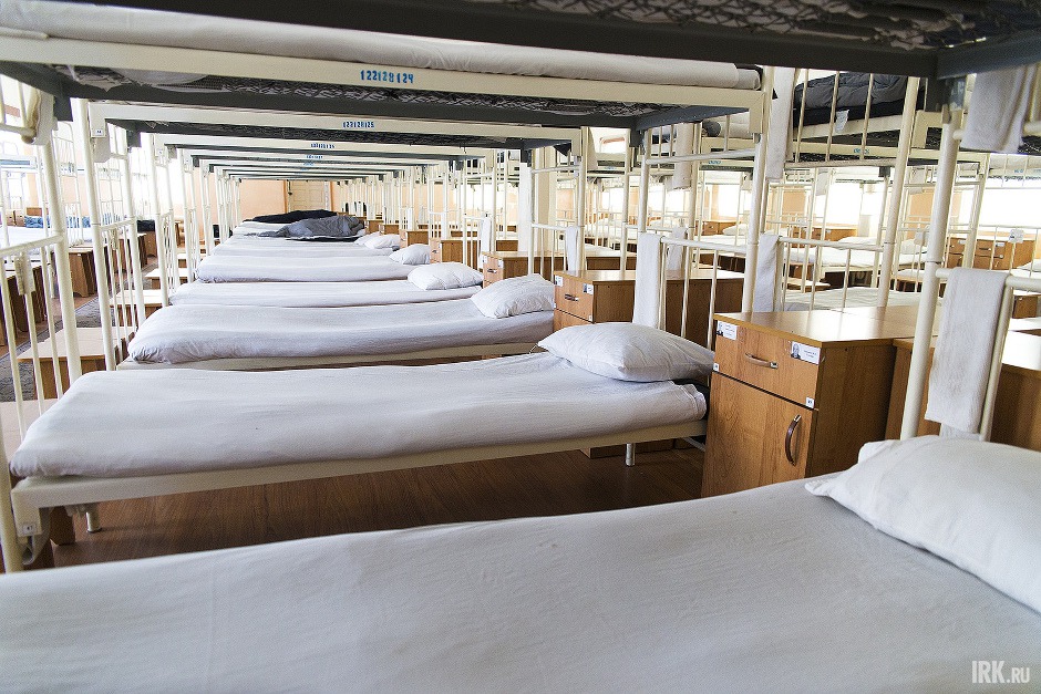 Внутри барака находится большая спальная секция, полная двухъярусных кроватей и тумбочек между ними. Всё именное, закреплено за номером осужденного. Места распределены исходя из нормы — два квадратных метра на человека. Раз в неделю меняется постельное белье. Два раза в неделю — баня.